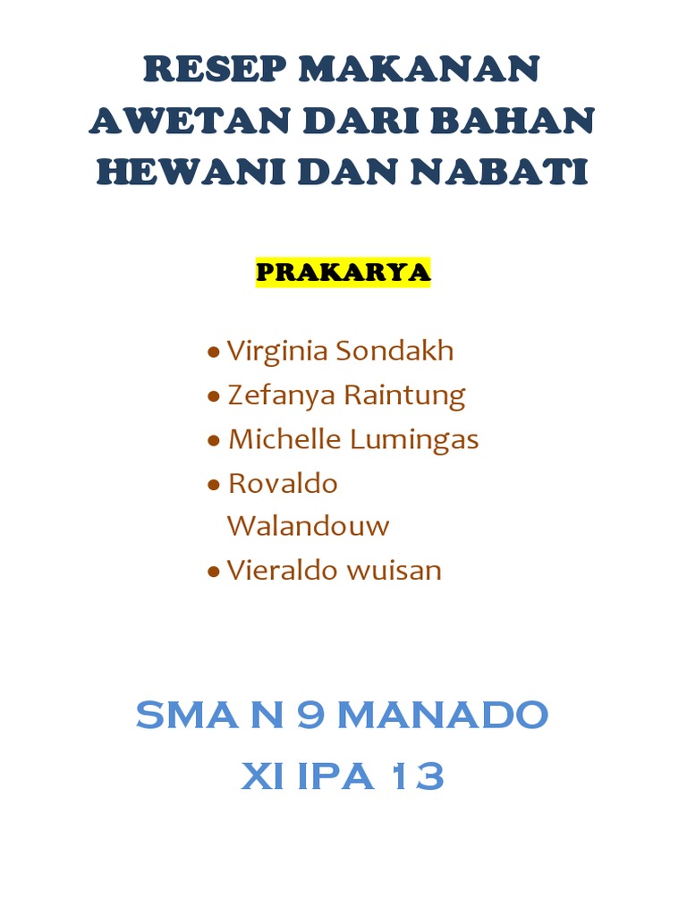 Resep Makanan Awetan Dari Bahan Hewani Dan Nabati Docx