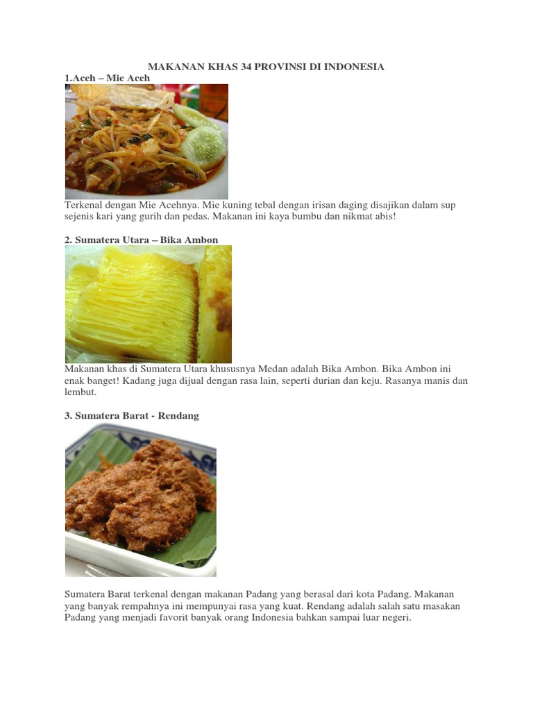 Keberagaman Sosial dan. Provinsi di ujung Pulau Sumatra ini punyai banyak makanan khas tapi yang paling populer adalah mi Aceh. MAKANAN TRADISIONAL DARI 34 PROPINSI DI INDONESIAdocx.