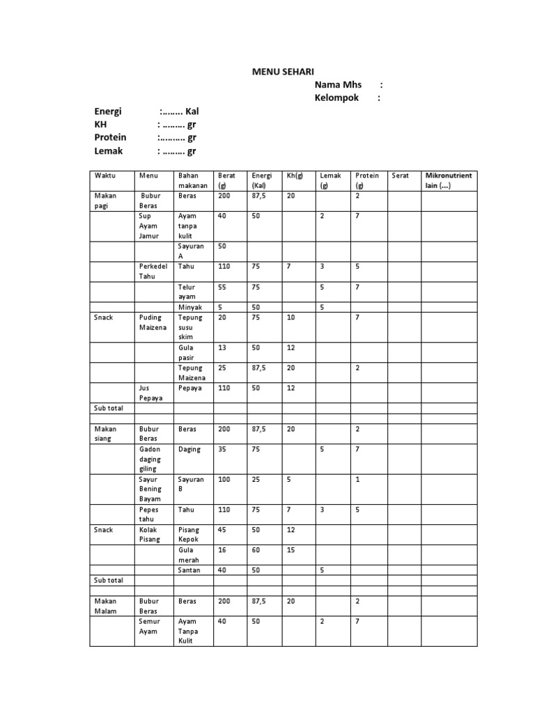 Contoh Format Menu Rs Dengan Berbagai Bentuk Makanan Kls Iii