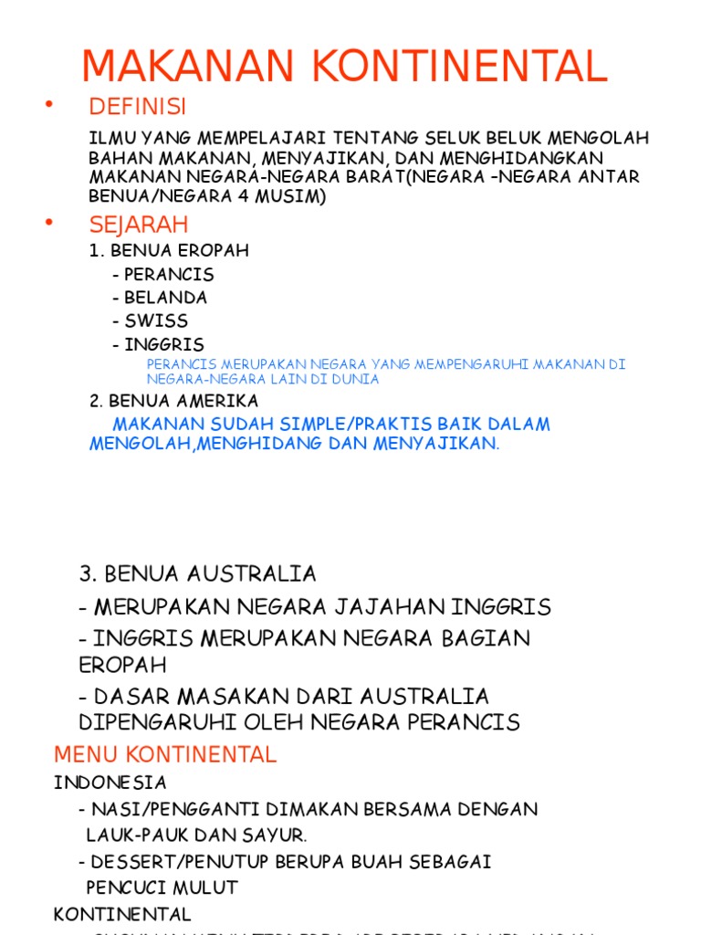 Lihat juga resep Menu Utama. Contoh makanan oriental dan kontinental dan asal negaranya. Makanan kontinental selalu menyuguhkan konsep plating yang baik.