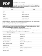 Apel Nanas Stroberi Wild Grapes Timun Wortel Kubis paling sedikit 1 macam buah dan 1 macam sayuran Truffle kalau ada Jagung kalau ada terung kalau ada Rebung kalau ada Jus anggur kalau ada jamur kalau ada Lobak kalau ada Bawang kalau ada Paprika.